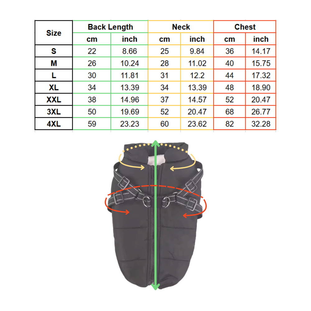 1x Veste d'hiver confortable avec harnais pour chien